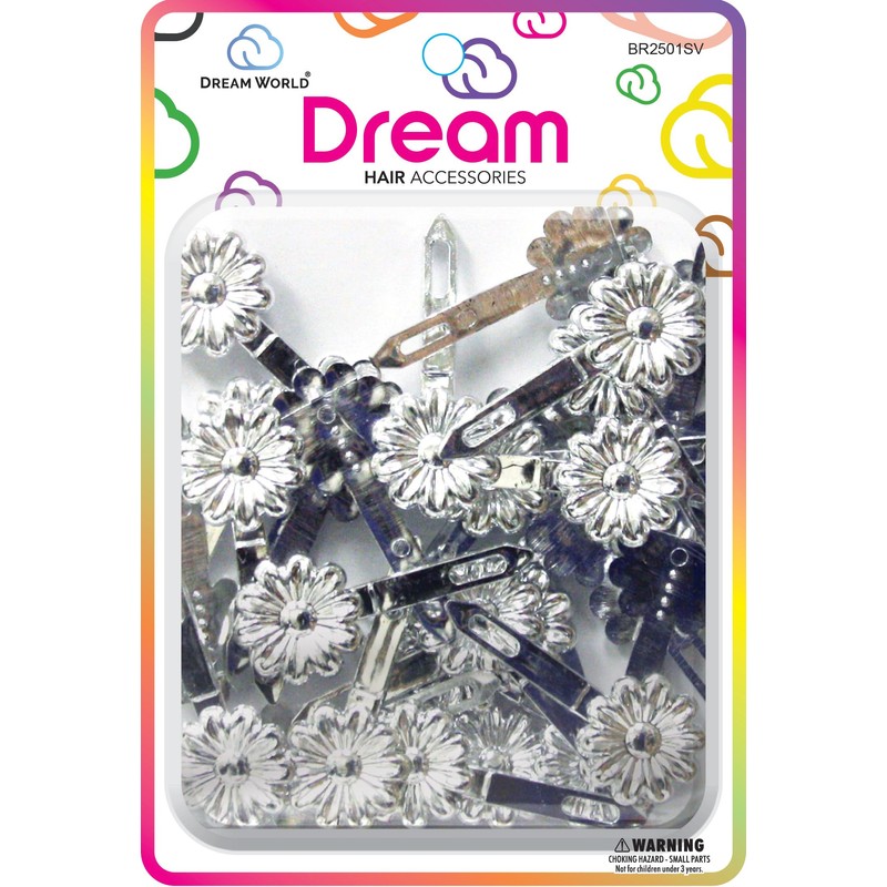 Dream World Self Hinge Barrette Daisy Silver 28 Piece Pack BR2501SV