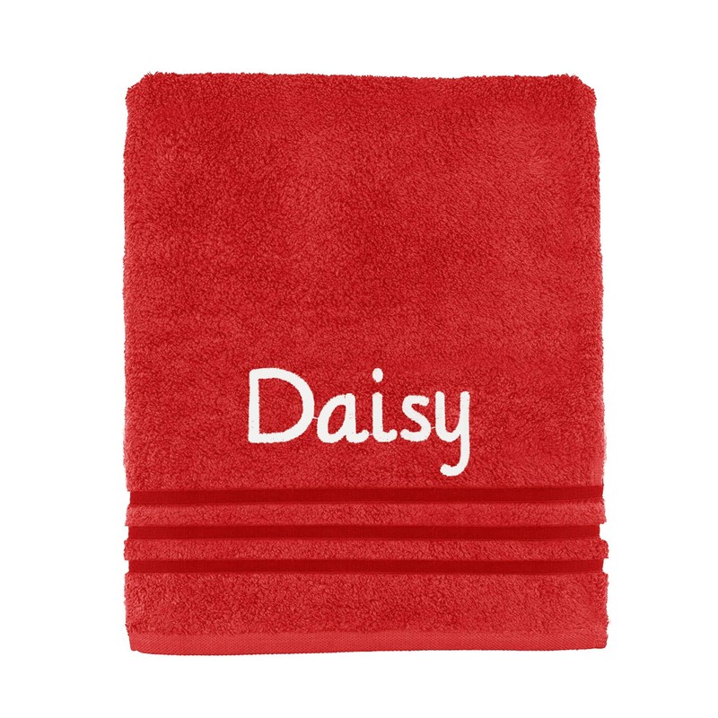 Dream Zone Personalised Embroidered Towels Set ANY NAME | Face Cloth | Hand Towel | Bath Towel | Bath Sheet | Beach Swimming Towel | Supreme 100% Egyptian Cotton 550GSM (Face Cloth, Red)