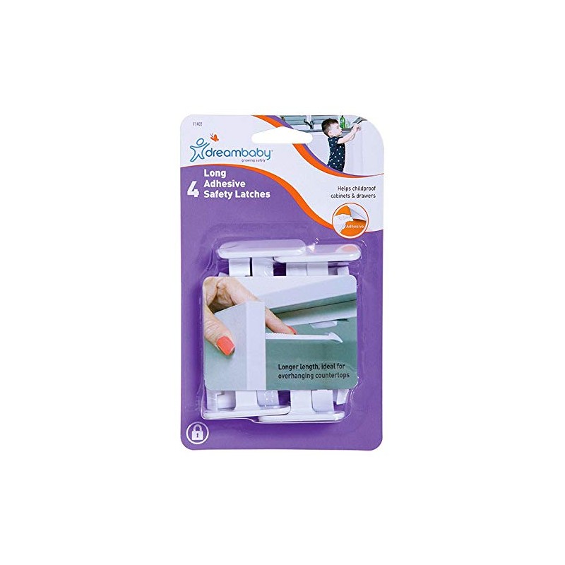 Dreambaby Adhesive Safety Latches for Cabinets & Drawers - Extra Long, 4 Pack