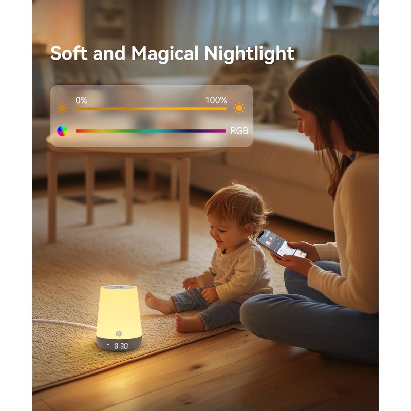 Dreamegg Nite 1 is an all-in-one sleep solution, featuring a sleep trainer, sunrise alarm, sound machine, night light, and nap timer in a single device.