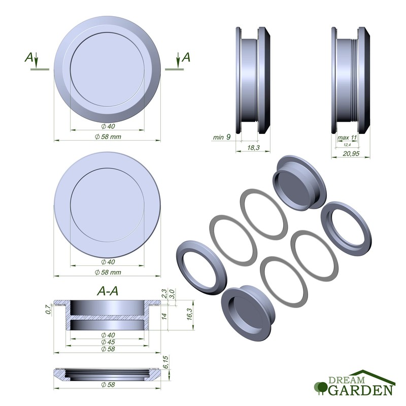 - Easy to install: the inlet handle is simply inserted while the two outer rings are tightly twisted against each other with plastic washers. No gluing required for quick and easy installation.