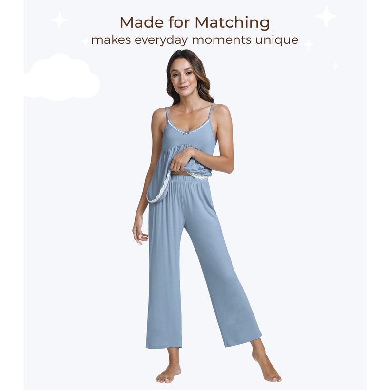 DREAMHALO Pajamas for Women Soft Cami Top with Pants Sleeveless Pajama Sets V Neck Sleepwear Viscose from Bamboo Pjs S-XXL Blue Ashes Medium