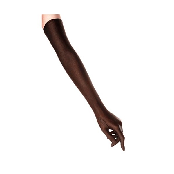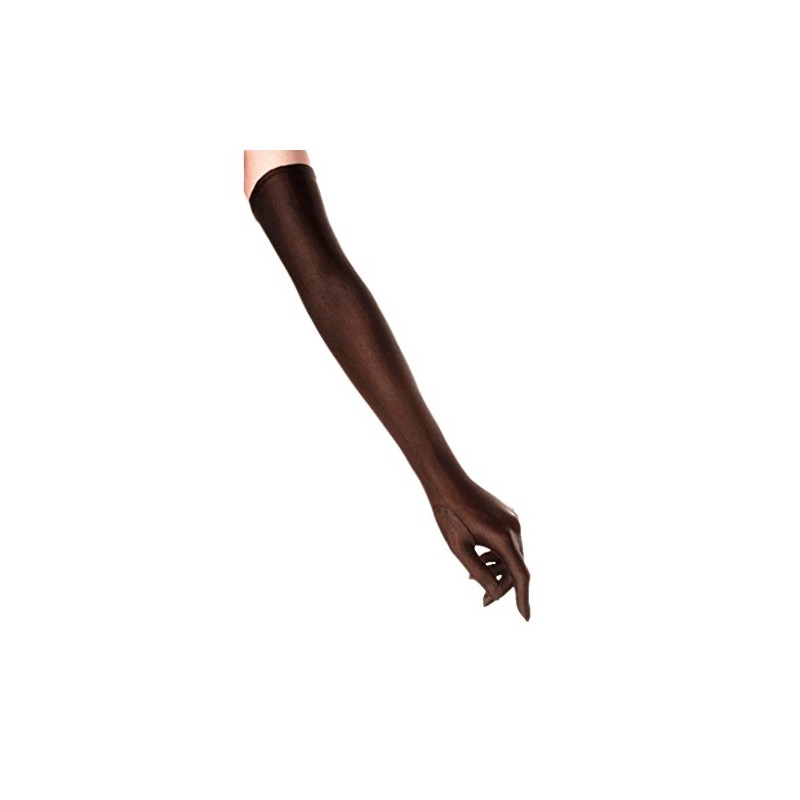DreamHigh Womens 22 inches Finger Mittens Over Elbow Long Black/White Evening Gloves-Brown