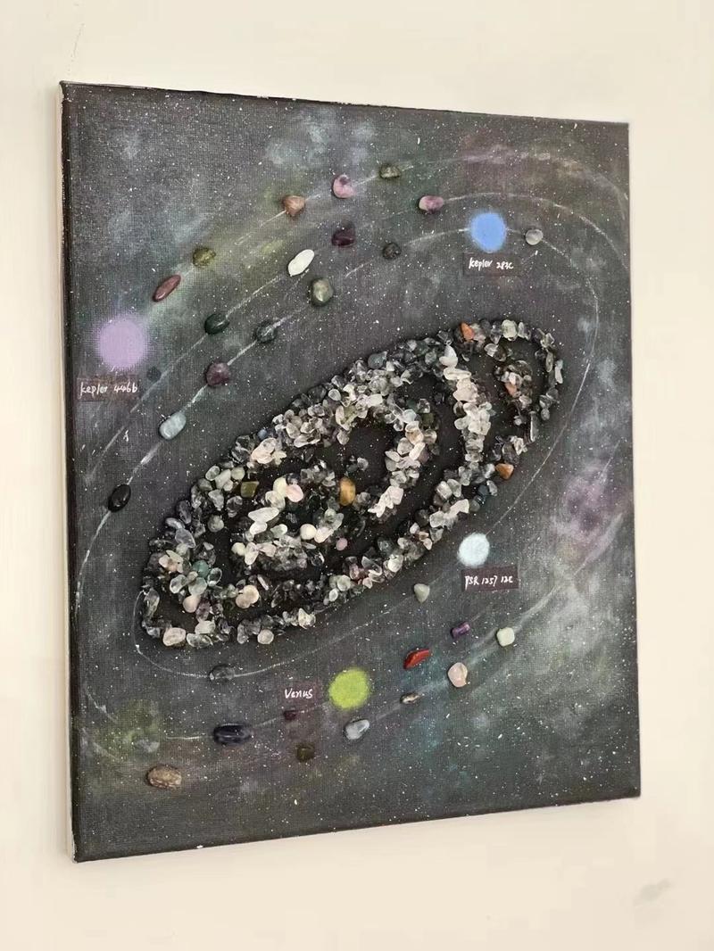 use crystal chipps ,combine with paintting ,making a magnifient galaxy picture,this picture shows nutural and mystery