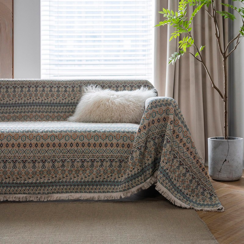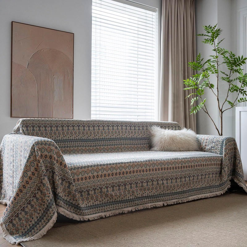 • ✨ 𝐌𝐮𝐥𝐭𝐢-𝐅𝐮𝐧𝐜𝐭𝐢𝐨𝐧𝐚𝐥 : This boho geometric couch throw covers are suit for any shape of sofas, easy to install. Unlike the limited of stretch sofa cover, it could be used in furniture protector by ordinary sofa, chair, loveseat, futon, L shape chaise sofa, recliner or bed, protect your furniture from pet dander or scratches and daily stain, perfect suit for families with kids and pets (dog/cat).