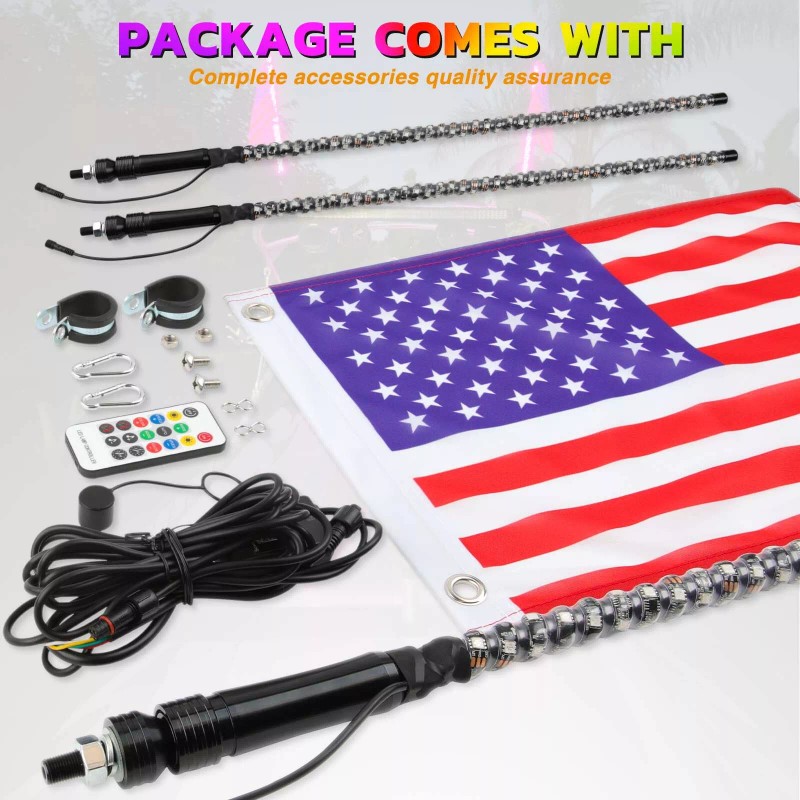 Dreamizer 2X 4ft RGB Spiral LED Whip Light + Flag & Remote For Polaris RZR1000 900 ATV UTV