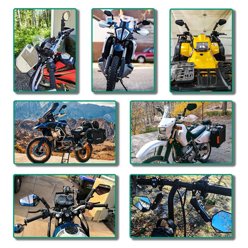 - Upgraded unique design: Our adventure motorcycle rearview mirror adopts double ball joint design, which can be adjusted by 360 degrees rotation, providing the best viewing angle, ensuring maximum visibility and reducing blind spots. Even in harsh off-road terrain, you can see clearly