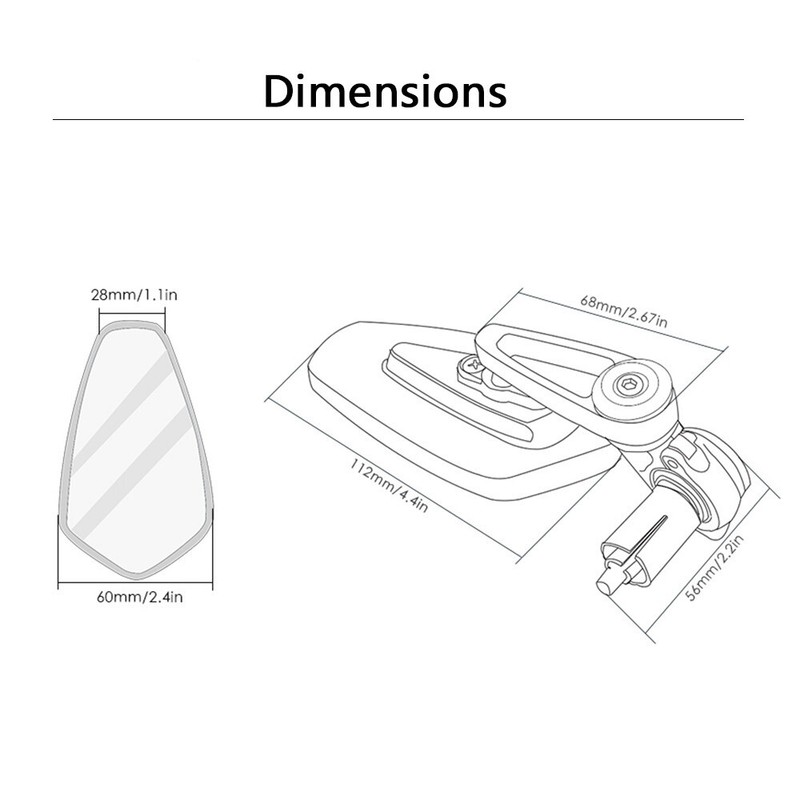 Mirrors Size: Approx 112mm/4.44" * 60mm/2.40"