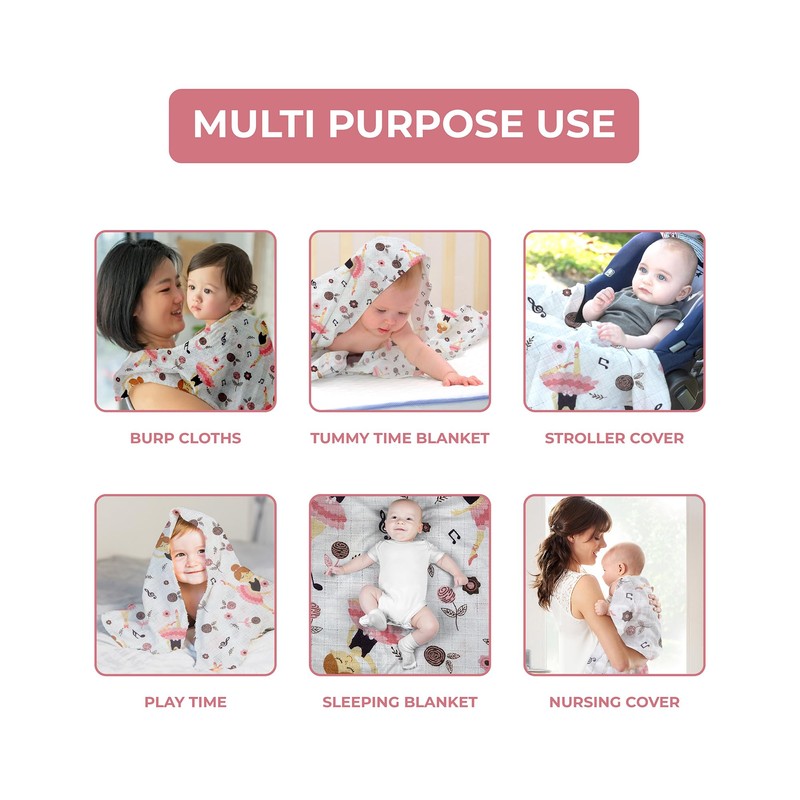 3. Versatility: Beyond swaddling, our blankets serve multiple purposes, from stroller covers to nursing wraps, adapting to your needs as your baby grows.