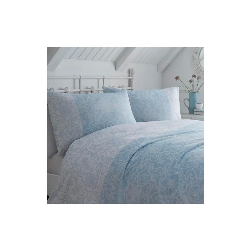 - Introducing the epitome of timeless elegance - the blue Frampton Duvet Cover Set by Dreams & Drapes. Crafted with meticulous attention to detail, this set features a refined mono paisley print that exudes sophistication. Flip it over to reveal a pristine white reverse, offering versatility and effortless charm. With its reversible design, this set allows you to effortlessly transform your bedroom into a sanctuary of classic style. Experience the enduring charm and impeccable craftsmanship that is synonymous with D&D Design. Coordinate with our exceptional collection for a perfectly curated, polished look.