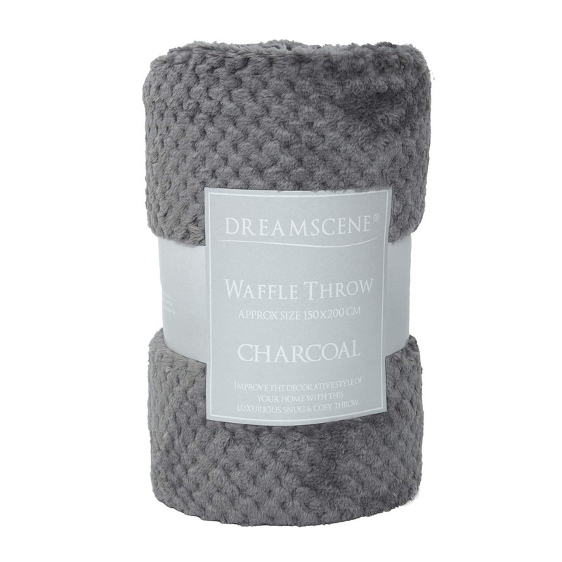 Dreamscene Luxury Waffle Honeycomb Soft Warm Throw Over Sofa Bed Blanket - 150 x 200cm - Charcoal Grey