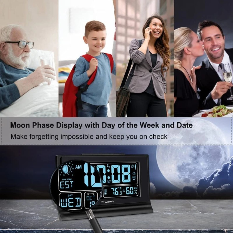 DreamSky Self Setting Alarm Clock with Indoor Temperature & Humidity