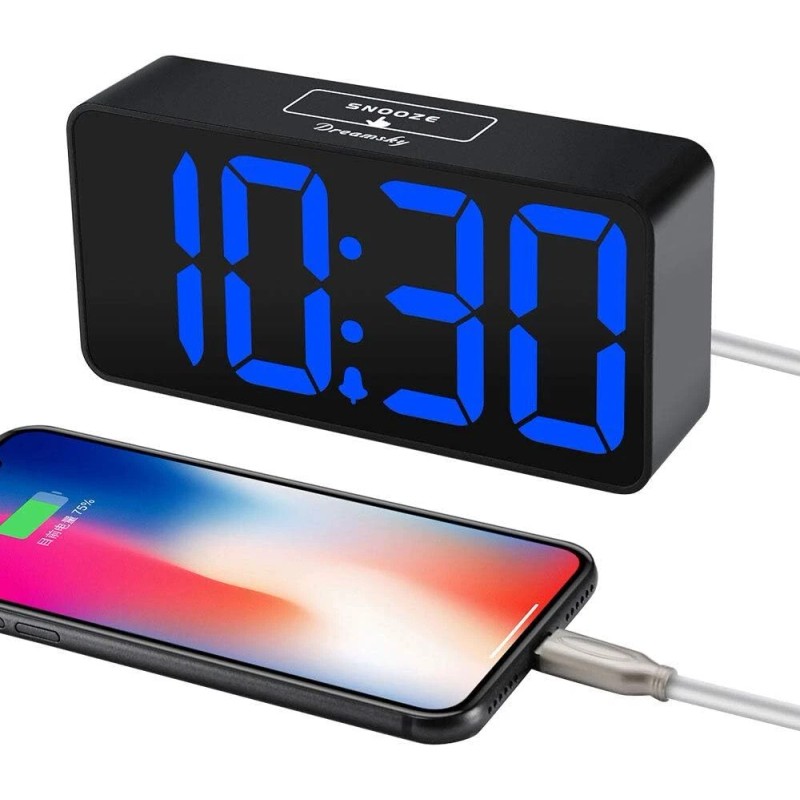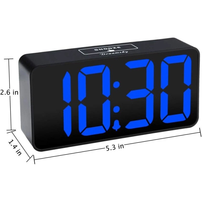DreamSky Large Display Blue Electric Alarm Clock With Brightness Dimmer Usb Charging