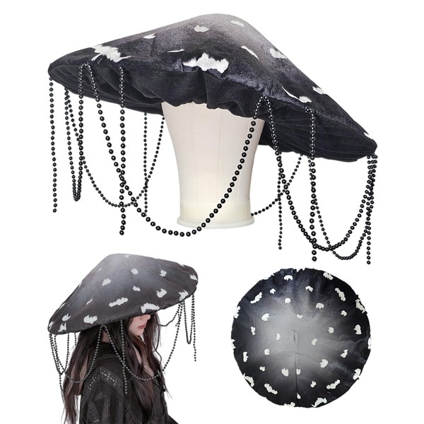 - [DESIGN] This wide brim mushroom shaped hat measuring 20 inches across is sure to give that oversize look. The gathered inner layer imitates the "gills" of the mushroom cap. Fits any head size with stretchy elastic.