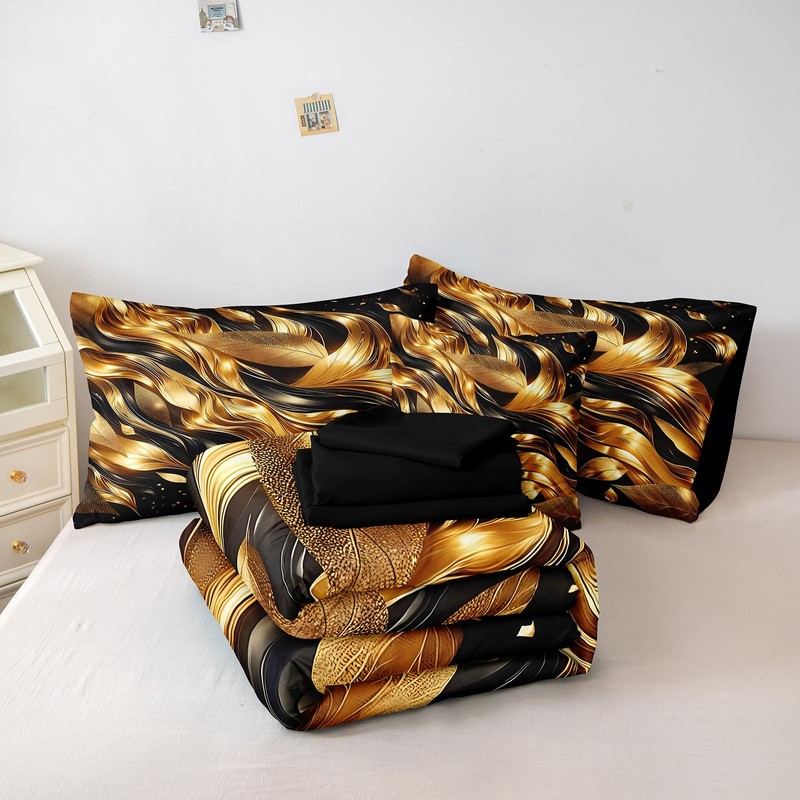 - KING COMFORTER SET with SHEET SET - 1 comforter (104''x90'') + 2 pillowcases (20''x36'') + 2 black pillowcases (20''x36'') + 1 black flat sheet(110''x 104'') + 1 black fitted sheet(78''x 80'' + 12'') + 1 cushion cover(18''x18'')
