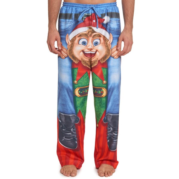 Dreamwave Holiday Christmas Elf Men's Fleece Pajama Pants Green/Red Small