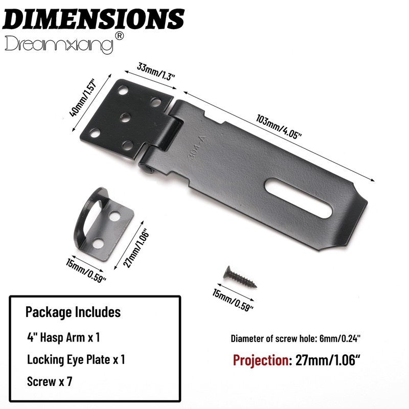 - 【PREMIUM STAINLESS STEEL】Dreamxiang Door Locks Hasp Latch is made of stainless steel, black powder coated and galvanized for anti-corrosion treatment, solid and durable, heat-resistant, scratch-resistant, rust-resistant.
