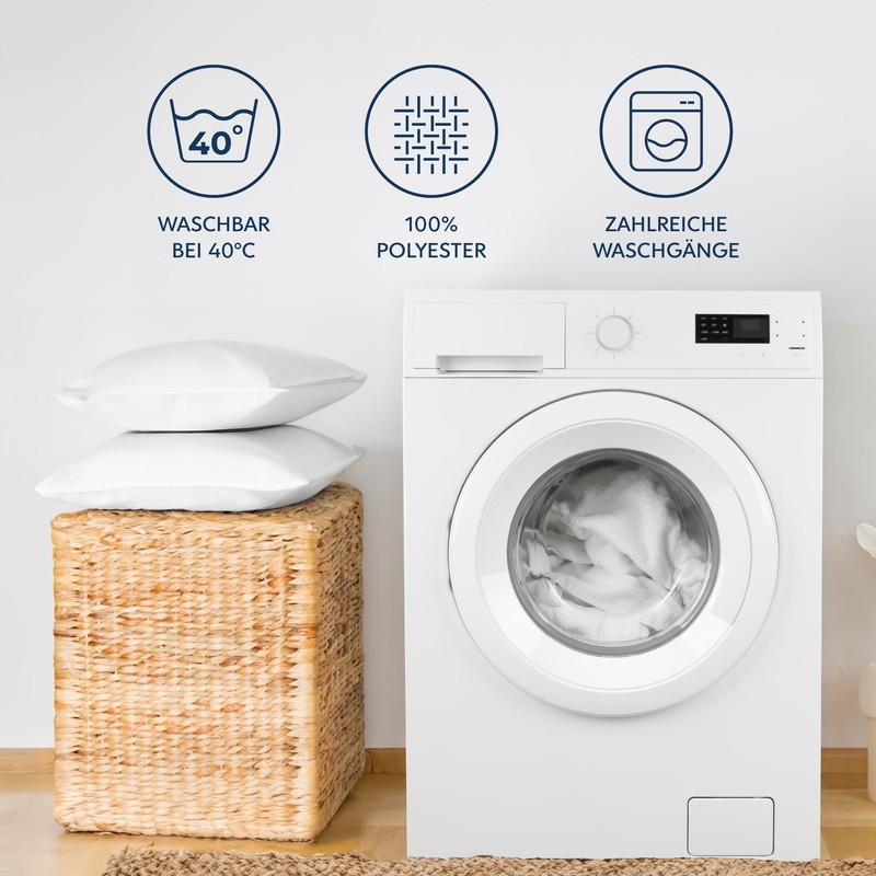 - Fewer wrinkles and easier care: The microfibre fabric is softer than cotton, reduces wrinkles and is very easy to clean. It can be machine washed at up to 40 °C and tumble dried at low temperatures.