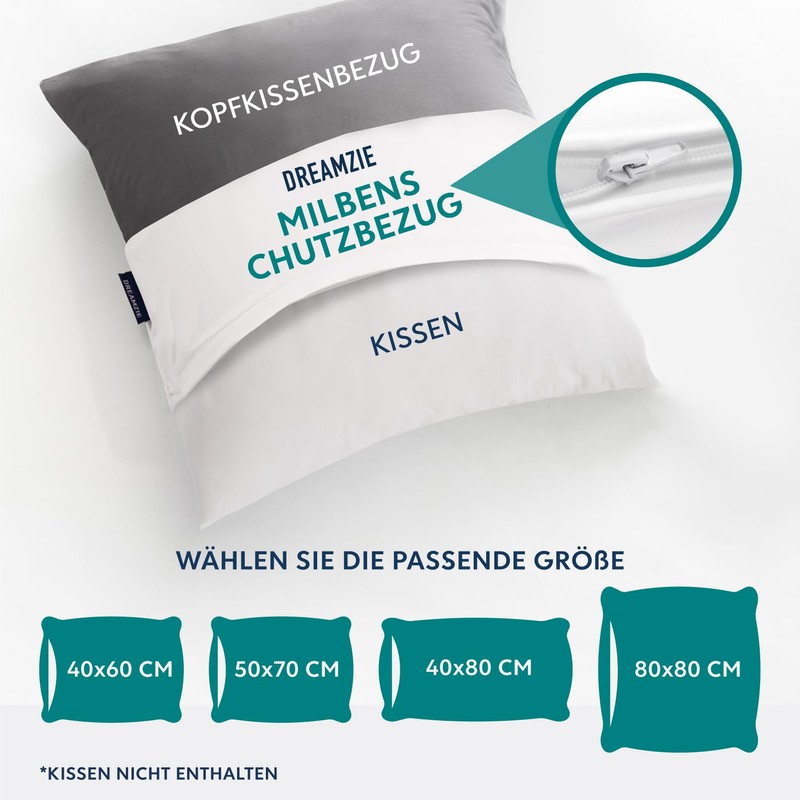 - Perfect fit and zip: the bed bug protective covers bed linen are available in several sizes, including pillow protectors 40 x 60, pillow protector 40 x 80, pillow case 50 x 70 cm and mite cover cushion 80 x 80 cm. The secure zip surrounds the cushion for complete protection.