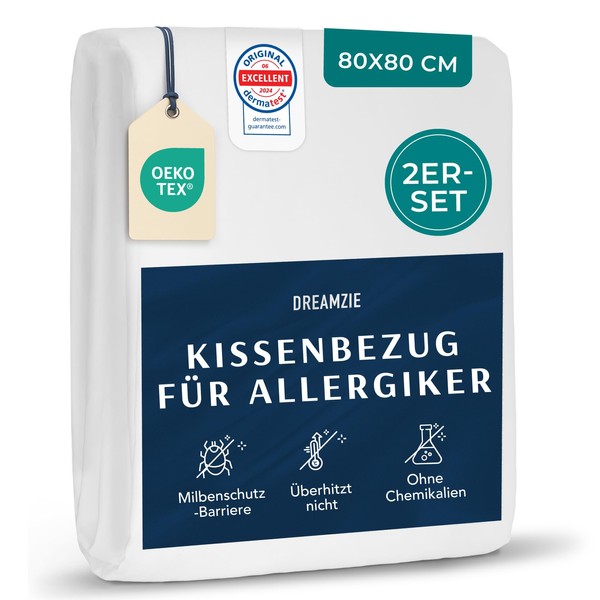 Dreamzie - Set of 2 Mite Cover Pillows 80 x 80 cm Cover - Allergy Bed Linen - Pillow Protector 80 x 80 cm Fight Dust Mites - Washable up to 95 °C