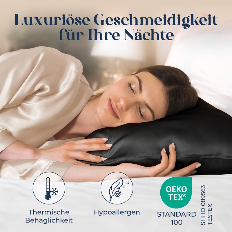 - DREAMY SLEEP PLEASURE ON PURE SILK - Our 100% carefully selected mulberry silk pillowcase will give you pure luxury every night. The unparalleled softness and natural shine transform your relaxation into a deep sleep experience and envelop you in a cocoon of comfort and well-being.