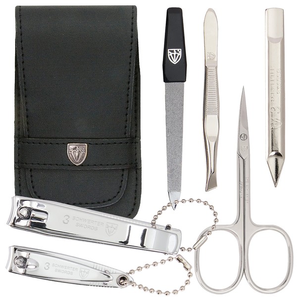 - Steel frame nail jewellery: first-class tested three sword brand quality since 1927, shiny nickel-plated and polished. Made in Solingen (except nail clippers). Our precisely forged scissors made in Germany are genuine screwed and meet the highest demands. Extensive quality controls guarantee a long service life of the nail set.