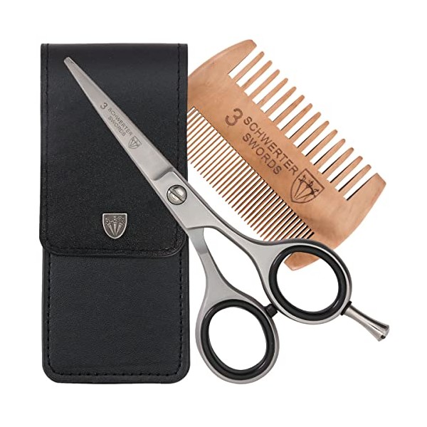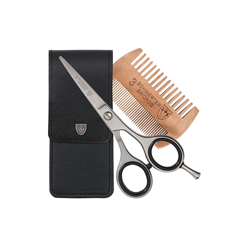 DREI SCHWERTER-Rostfreie professionelle Bartschere Haarschere mit Bartkamm im Etui