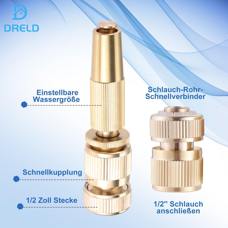 - 【Weite Verwendung】DRELD 2PCS Messing Gartenschlauch Düse Set ist Perfekt für Gartenschläuche, Hochdruckreiniger für Bewässerungseinheiten, Wasserhähne, Rasensprenger, Ausgüsse und anderes Gartenzubehör.