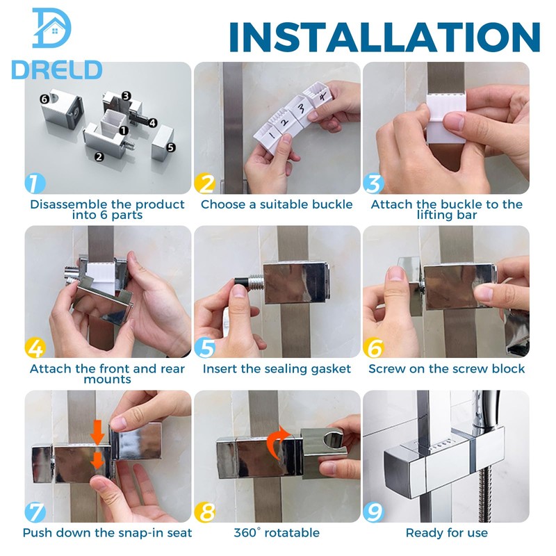 - [NO DISASSEMBLY, NO DRILLING]: There is no need to disassemble the square shower bar, simply assemble the product on the shower bar and use it immediately. Enjoy the flexibility of the shower head stand and the versatility of the handheld shower head.