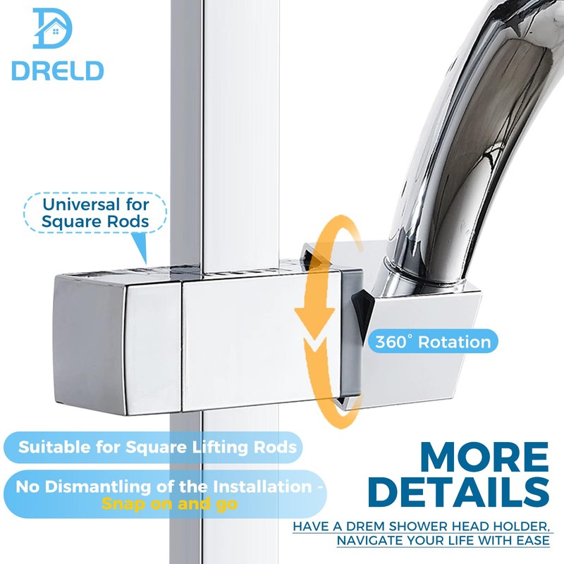 DRELD Adjustable Shower Bracket- No Removal of Shower Rail Shower Handset Holder with Four Sizes Slip-On Lift Rod Mounts - Ideal for Any Rail Rectangular Shower Rails (18x30, 22x22, 25x25, 30x15mm)