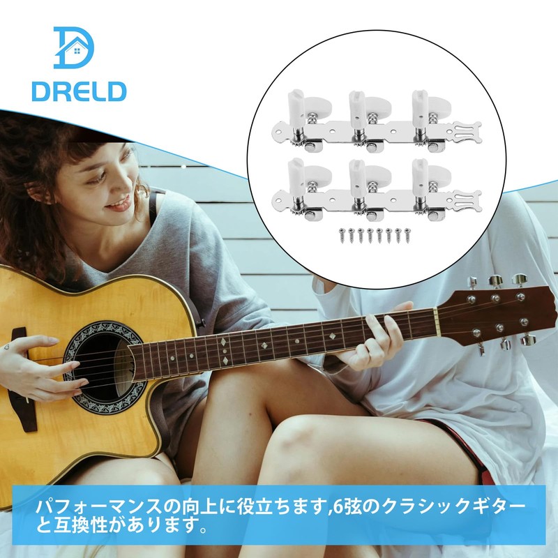 Dreld Guitar Tuning Pegs String Tuner Pegs Machine Head String Pegs Easy Installation 3L 3R 2 Rows Set 6 String Guitar Parts for Acoustic, Folk and Classical Guitar, Universal Replacement Parts for