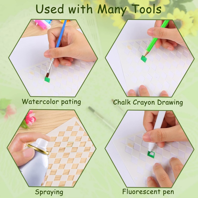• Premium Material——these geometric stencils are made of high-quality PET material that is non-toxic, odorless, durable and safe. Resistant to grease, dilute acids, dilute alkalis and most solvents, easy to clean after use, can be used for DIY art and craft projects for a long time.