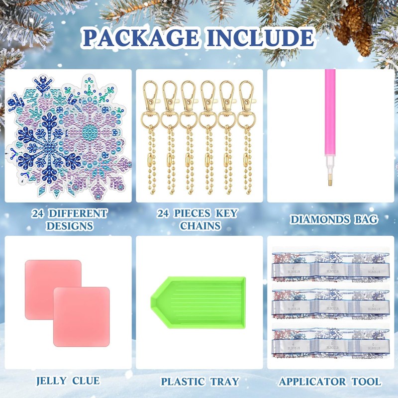 - 【24 Different Styles】 Our package contains 24 Christmas diamond snowflake painting key chains with tools, which are suitable for those who like DIY; Plenty to use for multiple projects or share with friends and family for a fun Christmas break together