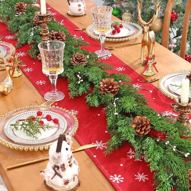 - 【Perfect Size for Easy Styling】Our pine Christmas garland measures 5.9 FT, giving you plenty of length to create stunning arrangements. Use one to drape over a mantel, pair two to wrap around a staircase, or cut (if needed) for smaller spaces like dining tables or shelves. Their flexible design lets you shape them into curves or swags, adapting to any decorating vision.