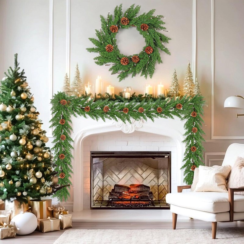 - 【Easy to Hang & Maintain】Say goodbye to complicated setups and constant upkeep! Our Dremisland pine Christmas garland is designed for ultimate convenience. Each Christmas garland comes fully assembled with a sturdy built-in hanging ring, simply hang it on any hook or nail to instantly transform your home into a cozy winter wonderland. Crafted from premium, fade-proof artificial materials, this greenery garland demands absolutely no maintenance: no watering, no pruning, no wilting, and no seasonal fading!