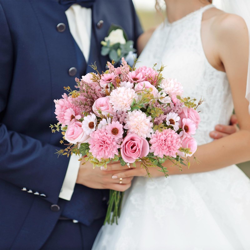 - 【Package Content】This package contains 4 bouquets of mixed pink artificial bouquets.Each bouquet that is 13in(33cm) in length has about 7 branches with rich flowers and leaves. Put these two bundles together can make a full and realistic bouquet,it can also be used alone,which will create a romantic and happy atmosphere for your important moment.