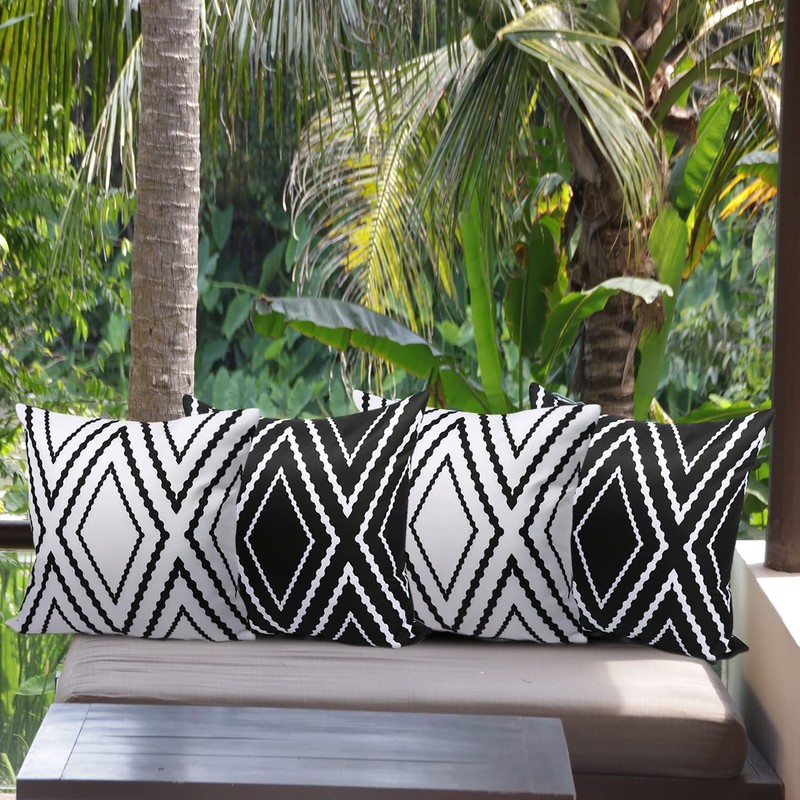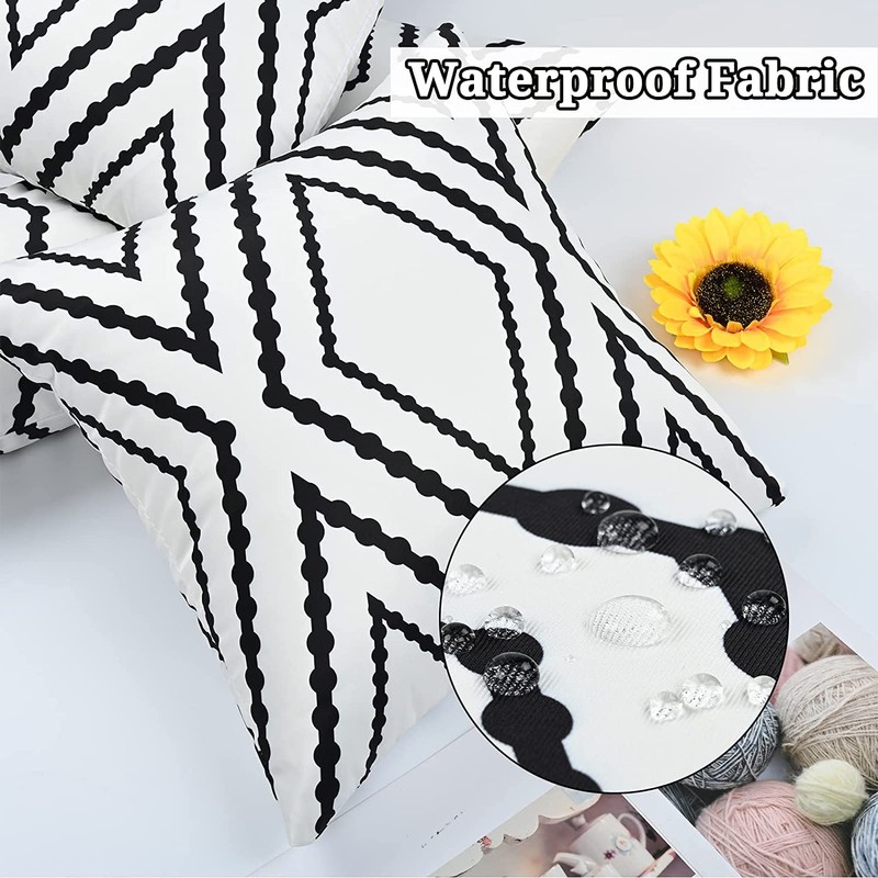 Dremisland Black and White Boho Pillow Covers 18 x 18 inches Aztec Geometric Pillowcases Waterproof Square Decorative Cushion Covers for Sofa Couch Bed Patio Garden