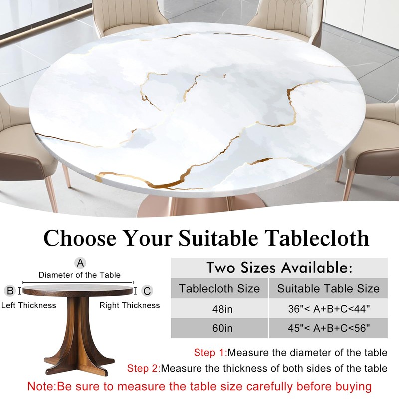 - 🍽️【Waterproof Tablecloth Size and Pattern】The wipeable round tablecloth offers you 2 patterns and 2 sizes, the patterns are mandala pattern and marble texture, and the sizes are 120 cm (suitable for tables 36'‘-44’') and 150 cm (suitable for tables 45'‘-56’').