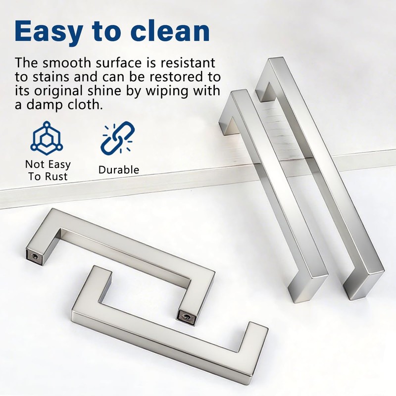 - Material: The kitchen door handle is made of high quality stainless steel, durable, rust-free, corrosion-resistant, abrasion-resistant, easy to clean, eco-friendly, non-toxic and long-term use.