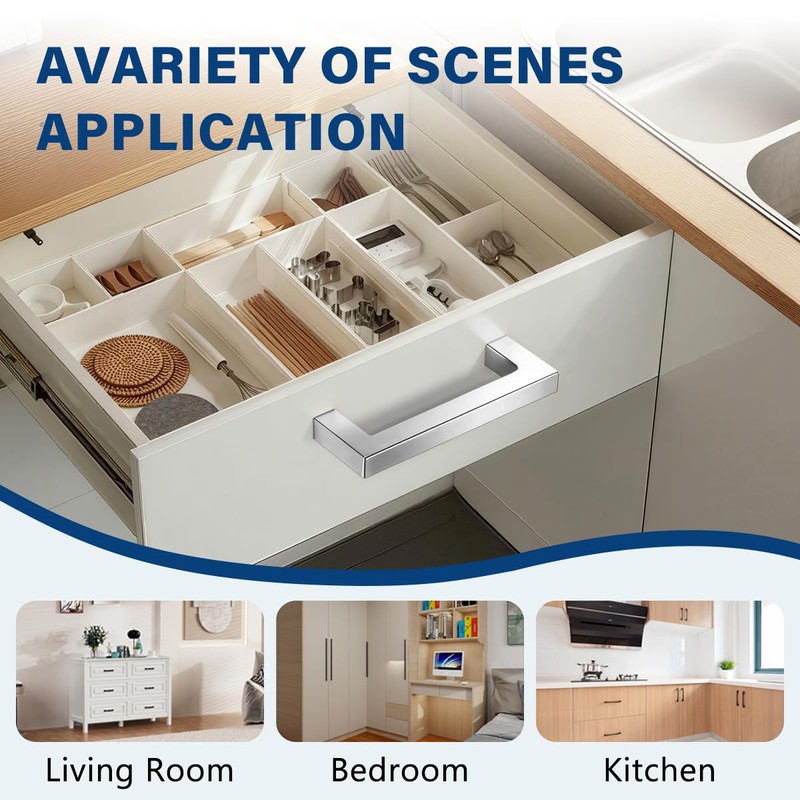 - Multilayer Process:Kitchen cabinet handles are made of five-layer nano electroplating process, integrated molding,corrosion resistance, not easy to fade,and long-lasting gloss.
