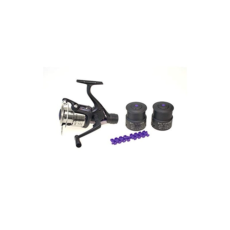 - Supplied with alloy plus two composite spools that will hold 100 metres of 8lb to 12lb mono