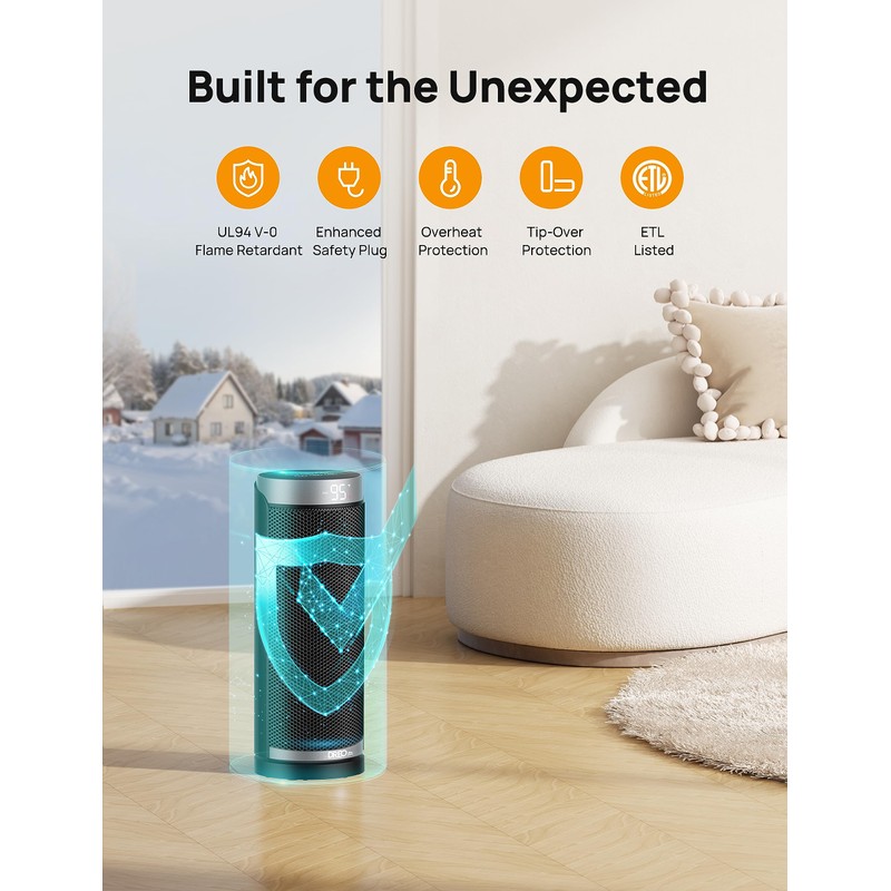 - ETL-Certified Safety: Made of V0 flame-retardant materials with multiple safety features including built-in smart tip-over protection, overheat protection, 12-hour timer, 24-hour automatic power off without interaction, V0 flame retardant 2-prong plug, and sturdy 6ft long flat power cord. Safe and worry-free all-day use. Safety Reminder: Please do not use with an extension cord. Only plug directly into the wall outlet.