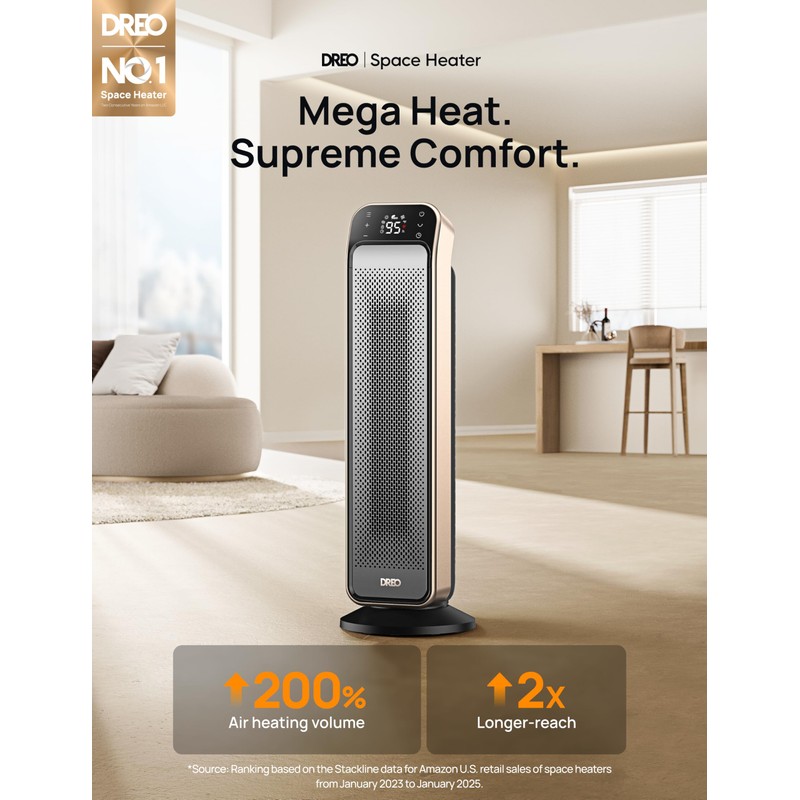 - The Ultimate Heating Experience: Dreo's upgraded 25" ceramic space heater brings 11.5 ft/s fast heat thanks to its new hyperamics thermal design, while the extended impeller doubles the heat range making it the ideal space heater for large rooms and warmer winters.