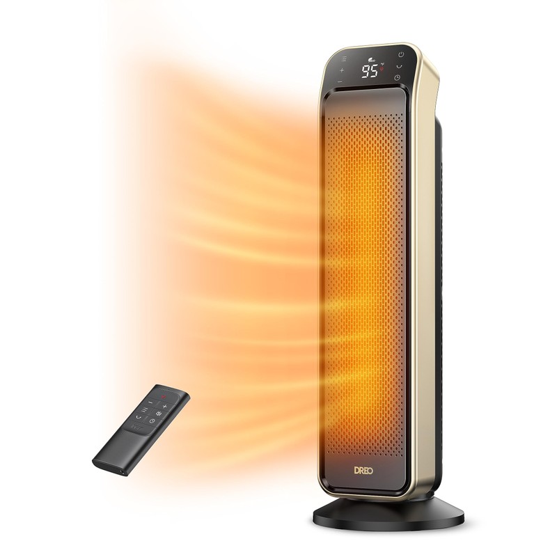 Dreo Space Heater Indoor, 25" 11.5ft/s Fast Portable Room Heater with Remote and Thermostat, 3 Modes, Overheating & Tip-Over Protection, Electric Heaters for Indoor Use Large Room, Bedroom, Gold