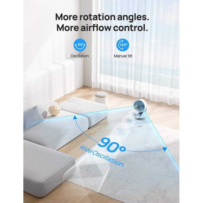 - Stay cool anywhere: With a 120° tilt and 90° oscillation, find the perfect angle and surround yourself in coolness; pair it with your AC for energy savings.