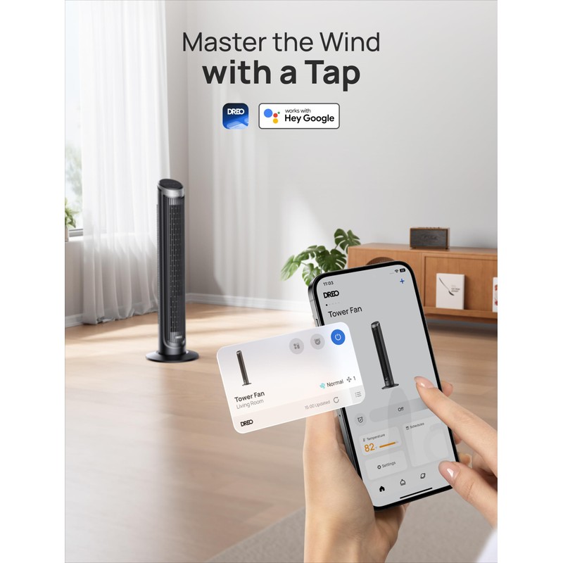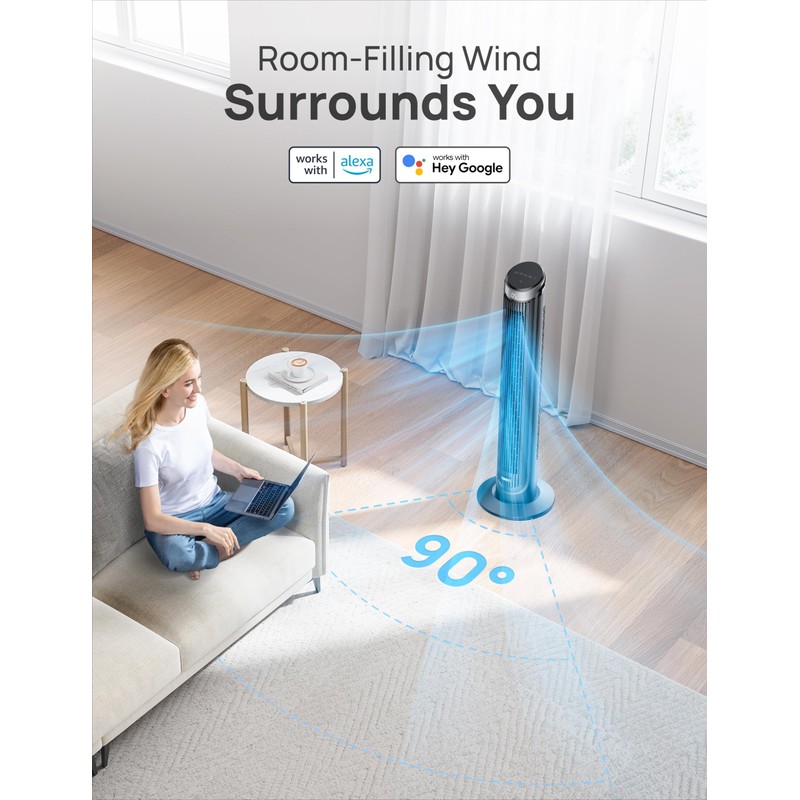 Special Feature:Remote Controlled, Portable Tower Fan, Oscillating, App Operable, Sleep Mode