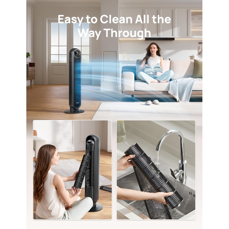 - Easy to Clean & Safe to Use: Removable rear grille and impeller wheel make cleaning more accessible. Designed with fingertip pinch-proof grills, a fused plug and built-in circuit protection, this ETL-listed standing fan ensures safety is always prioritized.