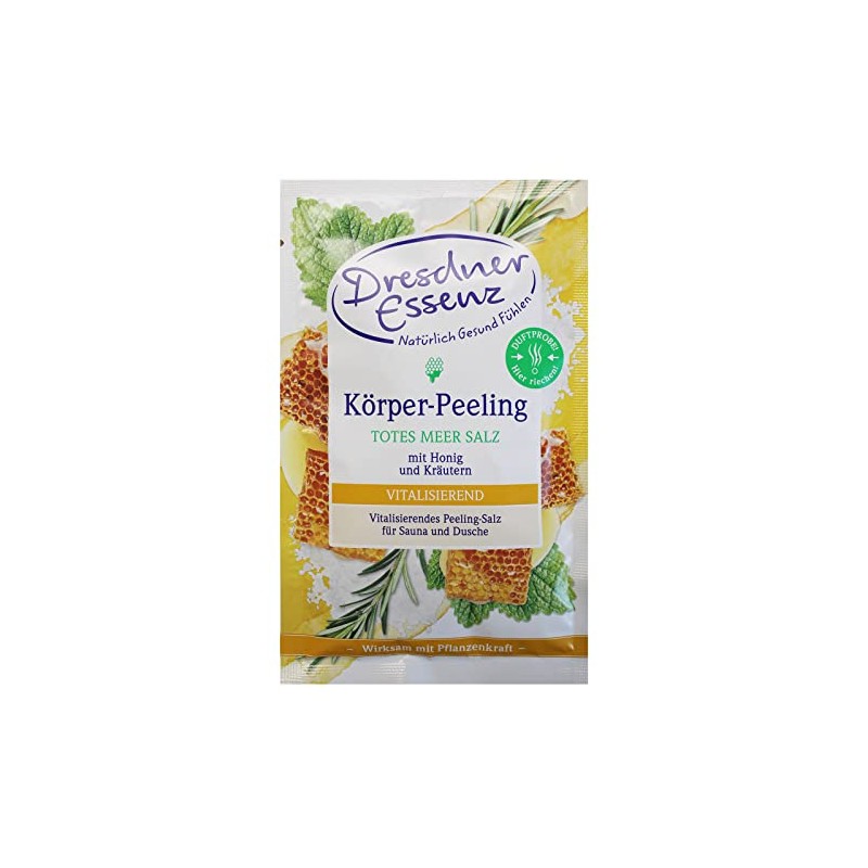 • The Dresdner Essenz Dead Sea Salt Honey Herb Body Scrub contains 50g.