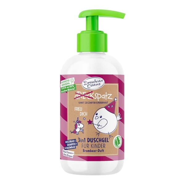 - Vegan 3-in-1 shower gel, shampoo and bubble bath