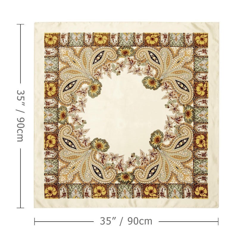 - SIZE - 90*90cm 35″*35″ square headscarf. Smooth and shiny. Square bandana, classy neckerchief for women. The size of the scarf is big enough to make a top.It is not only large enough to wrap your hair to sleep at night, but also can be used as a headscarf during the day.